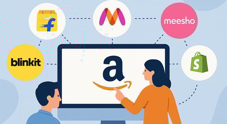 Account Management, guiding clients through platform selection and onboarding across major e-commerce giants like Amazon, Flipkart, Myntra, Meesho, Blinkit and Shopify.